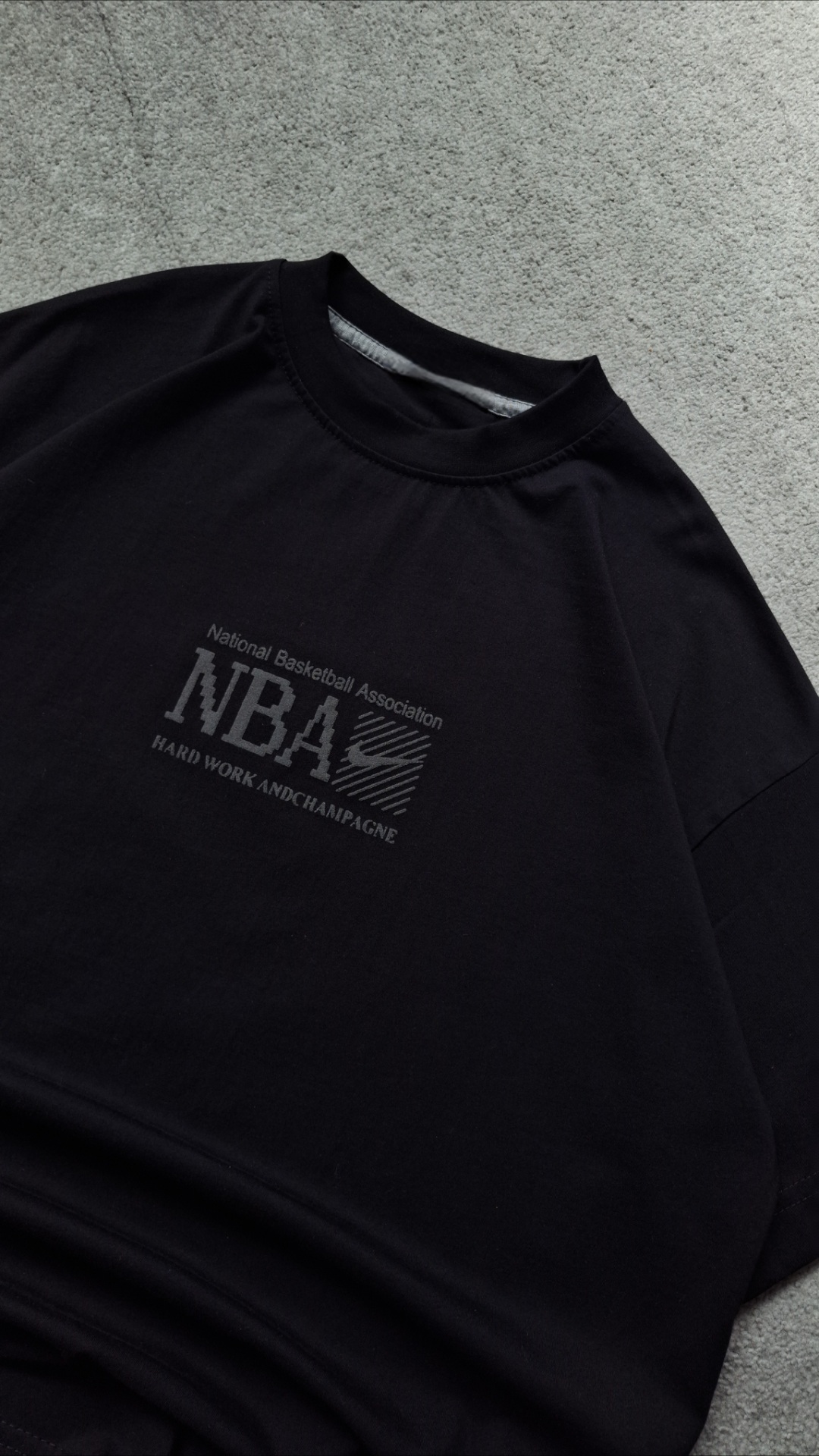 ناموجودتیشرت مشکی پارچه پنبه قواره باکسی مدل NBA کد TSH0016
