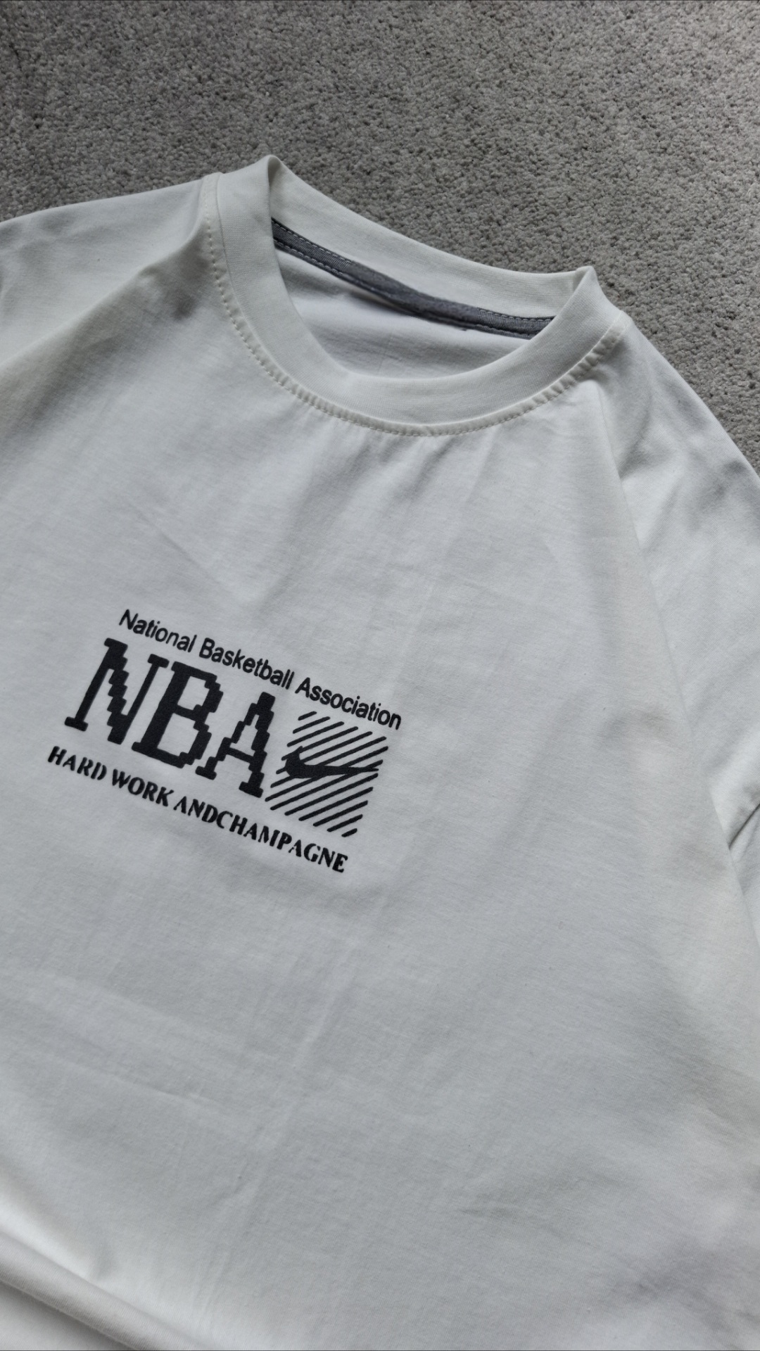 ناموجودتیشرت سفید پارچه پنبه قواره باکسی مدل NBA کد TSH0016