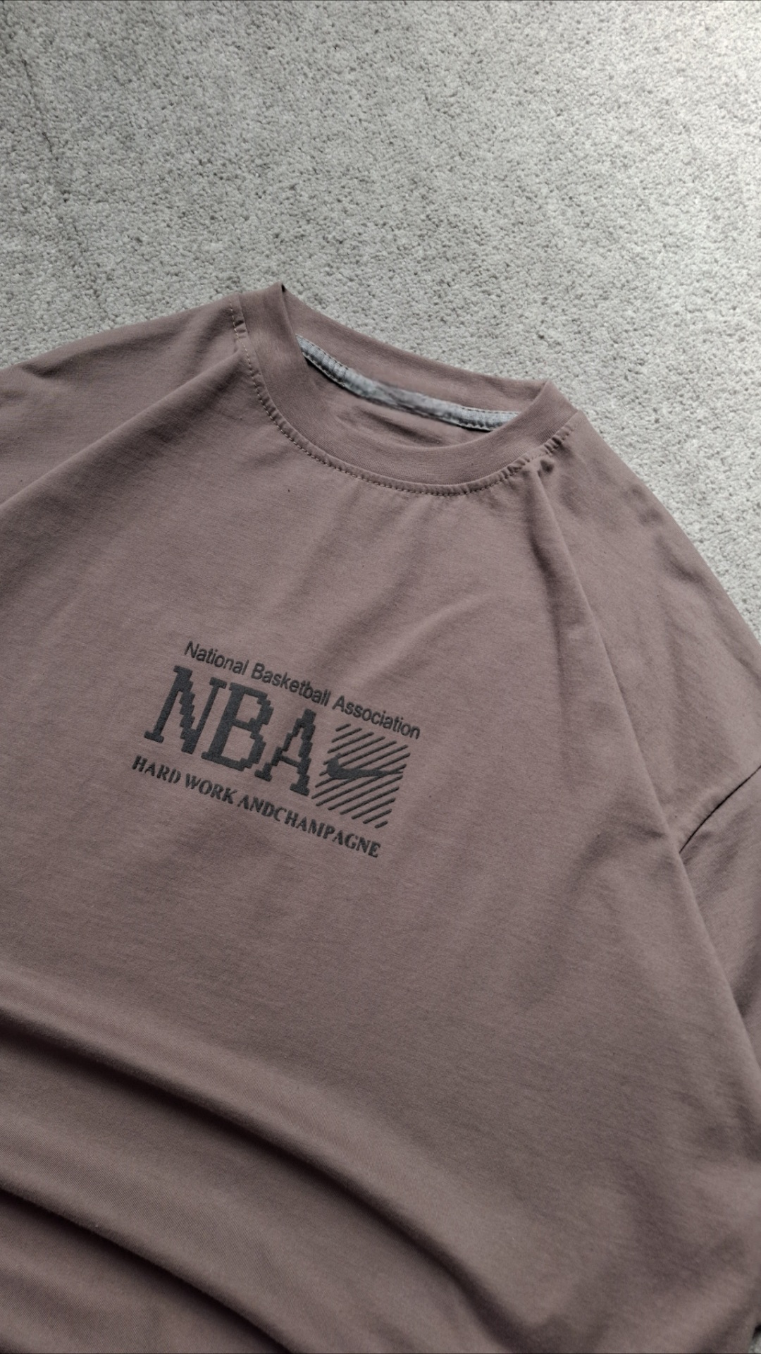 ناموجودتیشرت قهوه ای پارچه پنبه قواره باکسی مدل NBA کد TSH0016