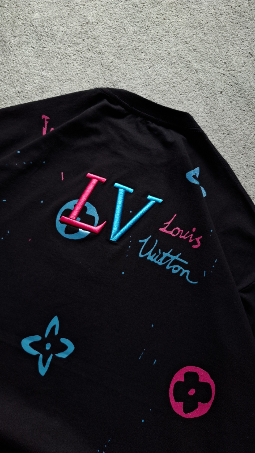 ناموجودتیشرت مشکی پارچه پنبه قواره باکسی مدل LOUIS VUITTON کد TSH0018