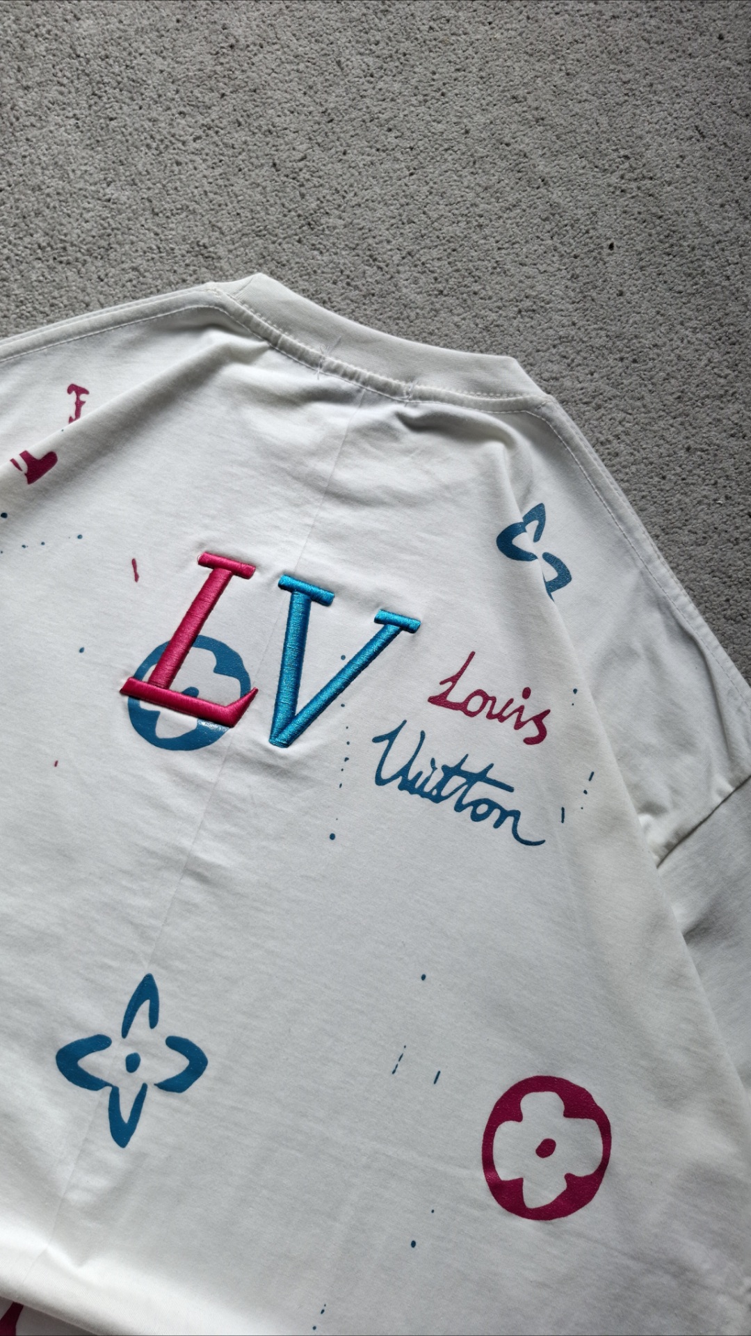 ناموجودتیشرت سفید پارچه پنبه قواره باکسی مدل LOUIS VUITTON کد TSH0018
