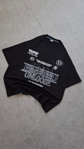 تیشرت مشکی پارچه دورس 2 نخ قواره باکسی مدل unloose کد TSH0019