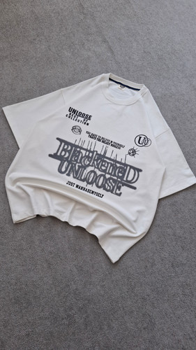 تیشرت سفید پارچه دورس 2 نخ قواره باکسی مدل unloose کد TSH0019