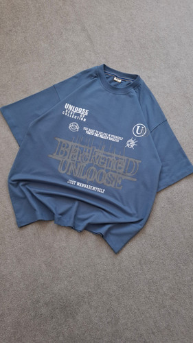تیشرت آبی پارچه دورس 2 نخ قواره باکسی مدل unloose کد TSH0019