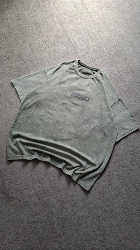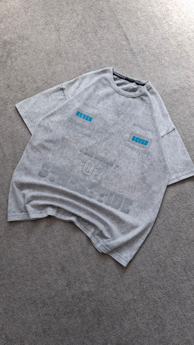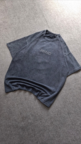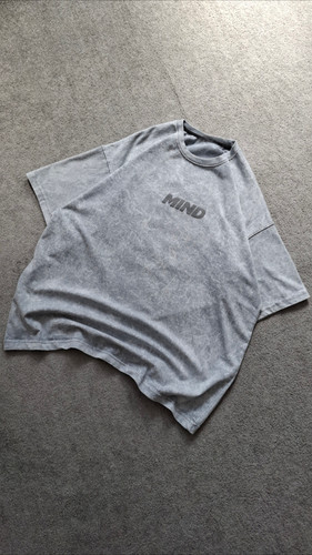 تیشرت سنگشور طوسی پارچه ماکان قواره باکسی مدل MIND کد TSH0021
