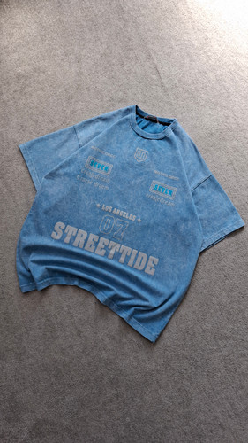 تیشرت سنگشور آبی پارچه ماکان قواره باکسی مدل Los angeles کد TSH00۲۰