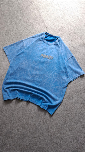 تیشرت سنگشور آبی پارچه ماکان قواره باکسی مدل MIND کد TSH0021