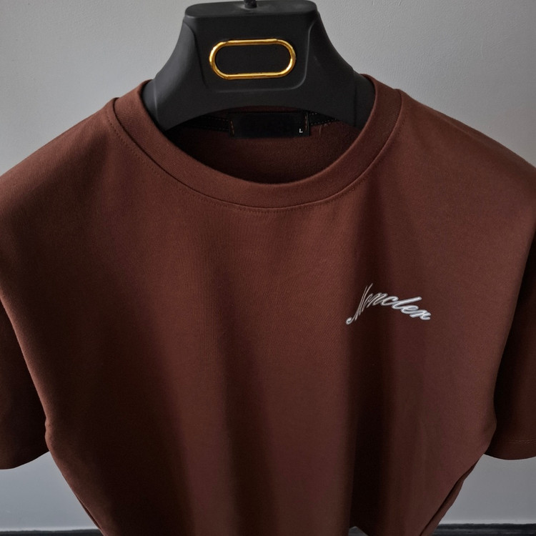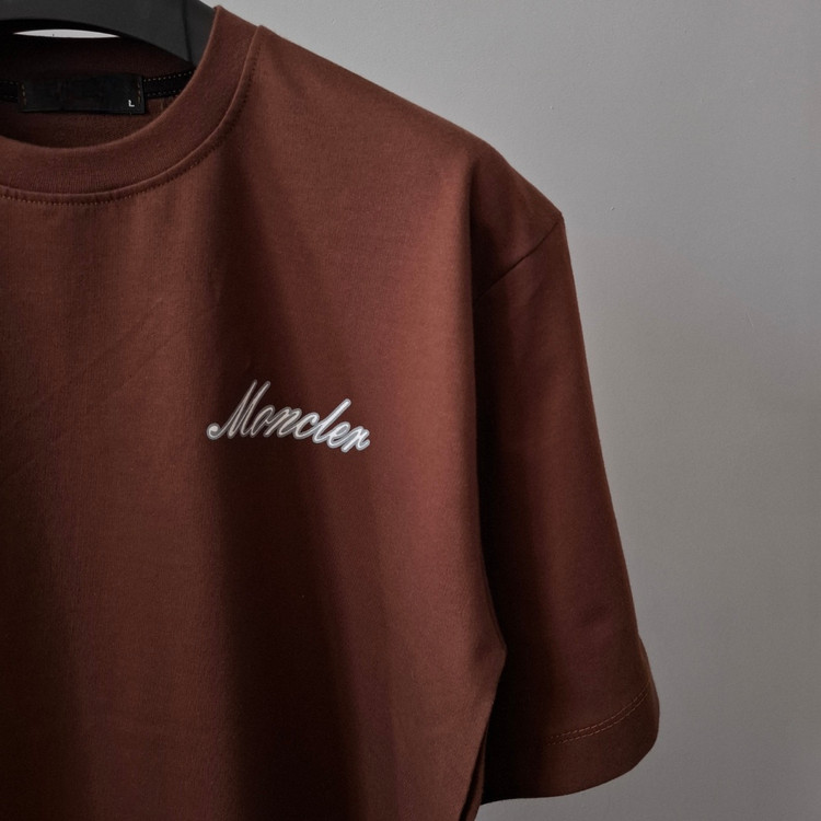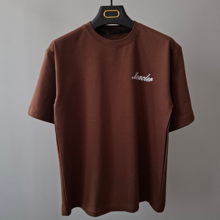 تیشرت قهوه ای پارچه دورس 2 نخ قواره باکسی مدل moncler کد TSH0019