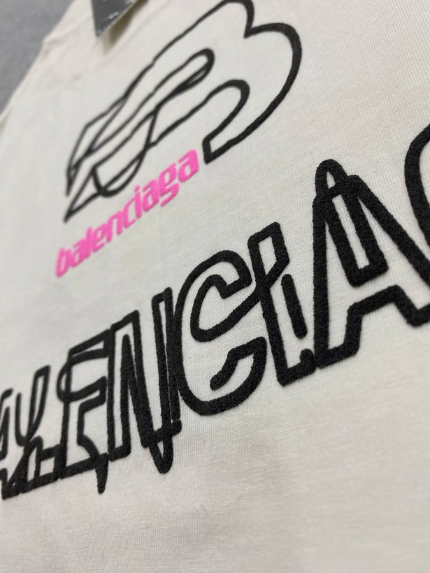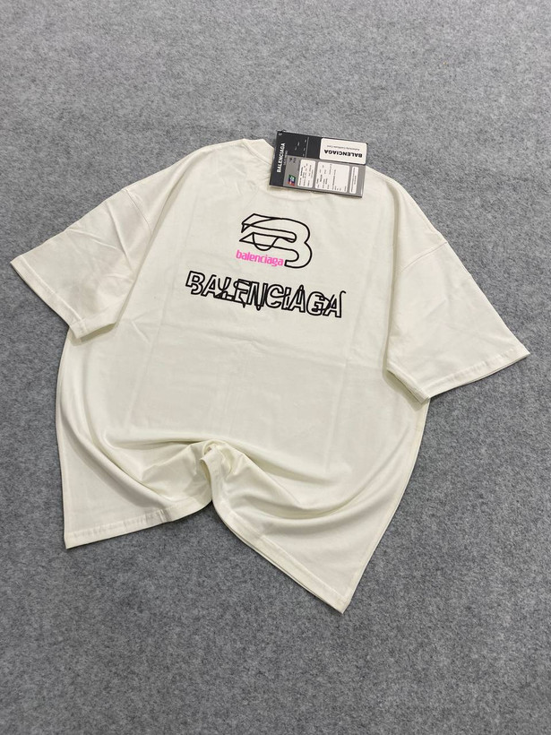 تیشرت سفید پارچه پنبه نخ 28 قواره باکسی مدل بالنسیاگا کد TSH0024
