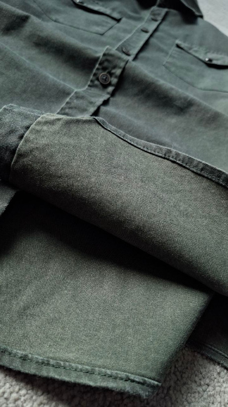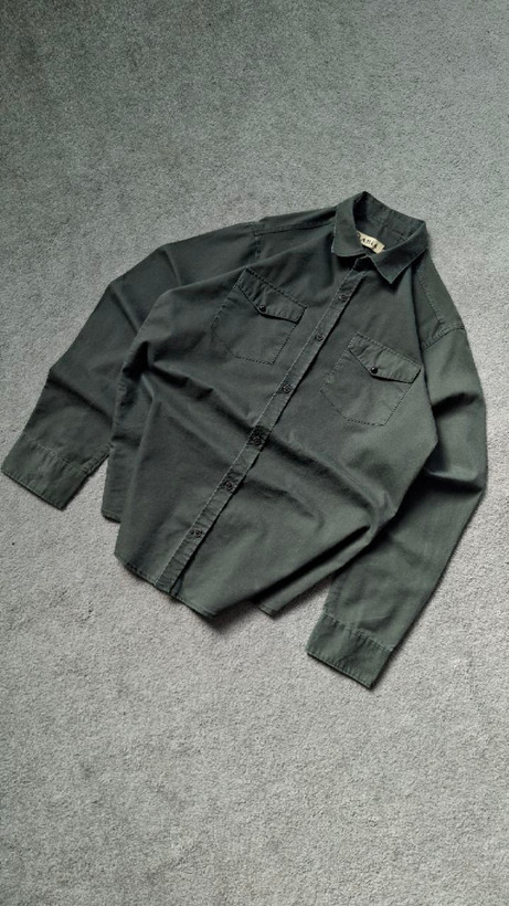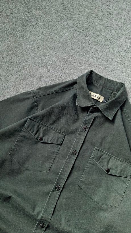 پیراهن کتان سبز یشمی سنگشور شده مردانه دو جیب کد PA0007