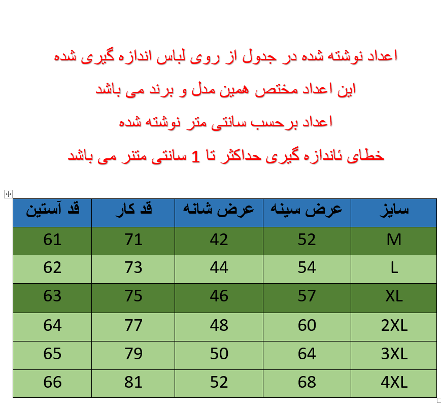 سایز بندی : M تا 4XL