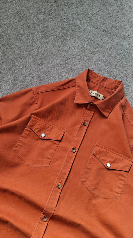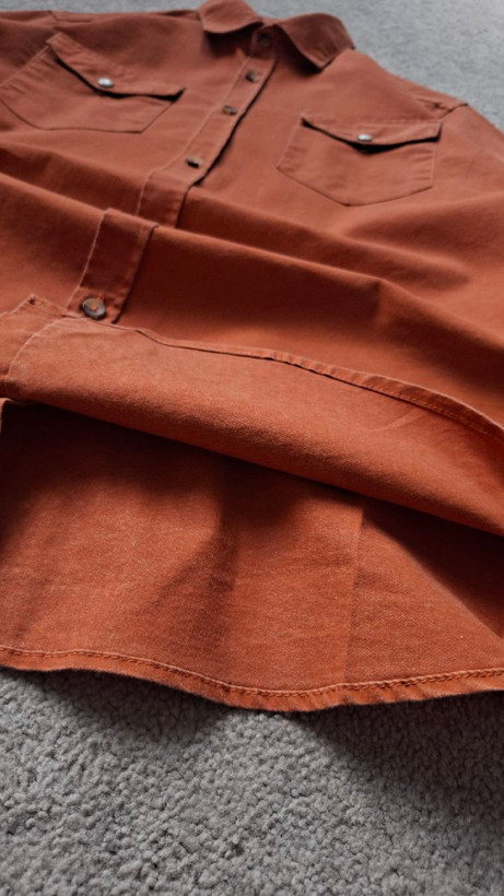 پیراهن کتان نارنجی سنگشور شده مردانه دو جیب کد PA0007