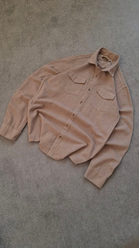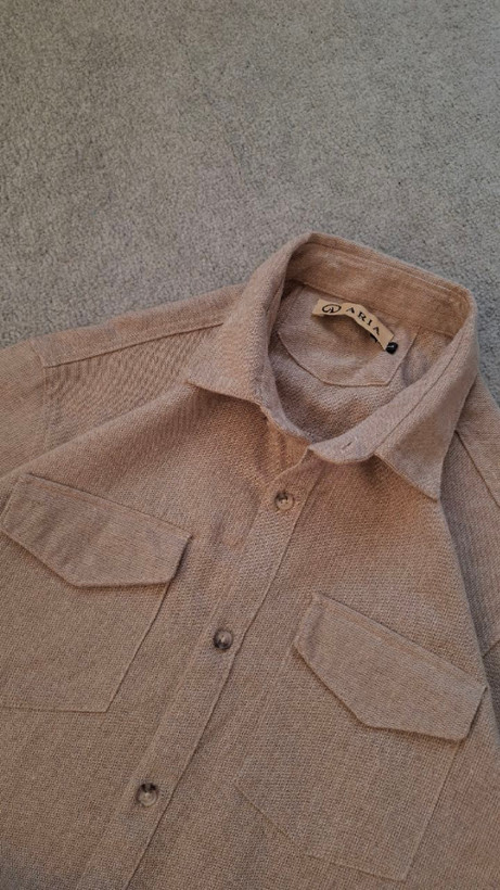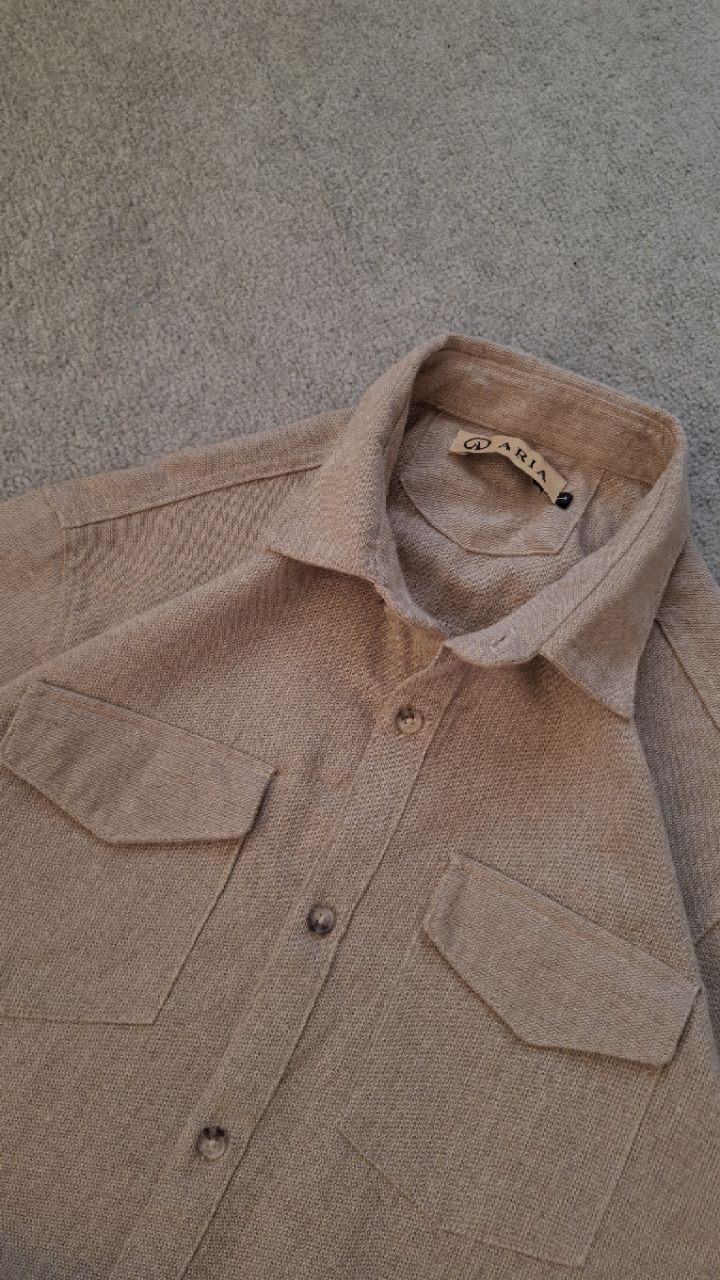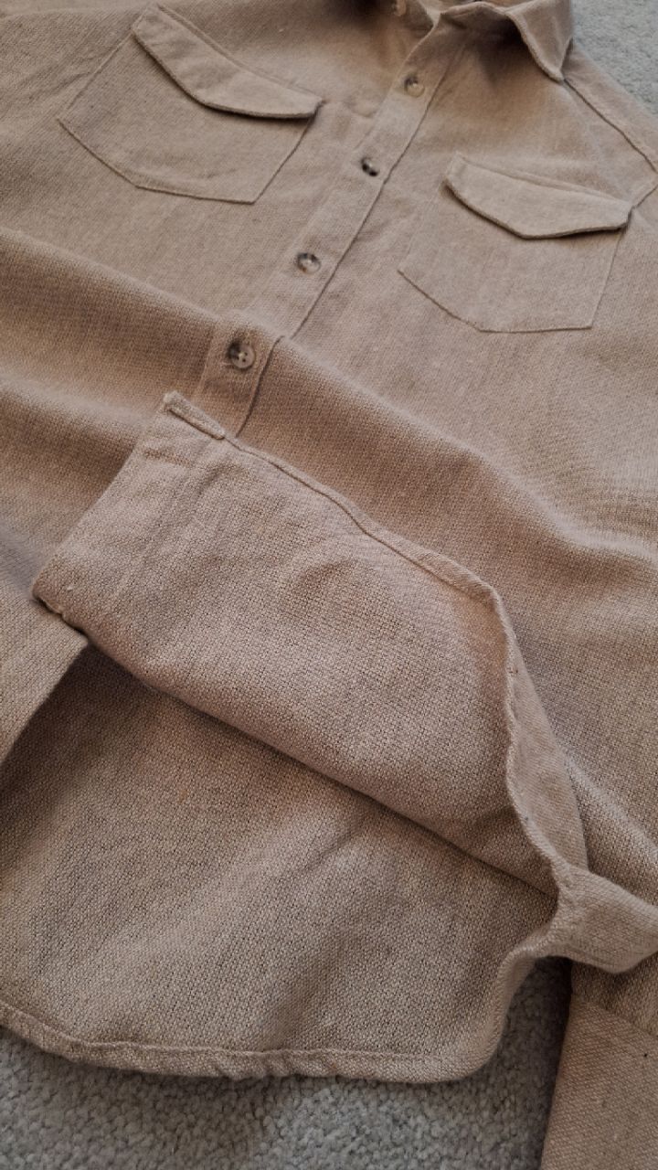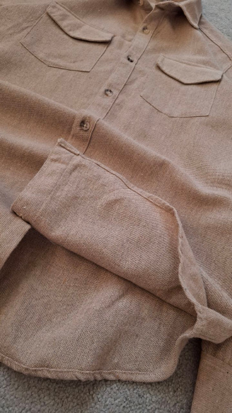 پیراهن نخی کنفی کرمی مردانه دو جیب کد PA0009
