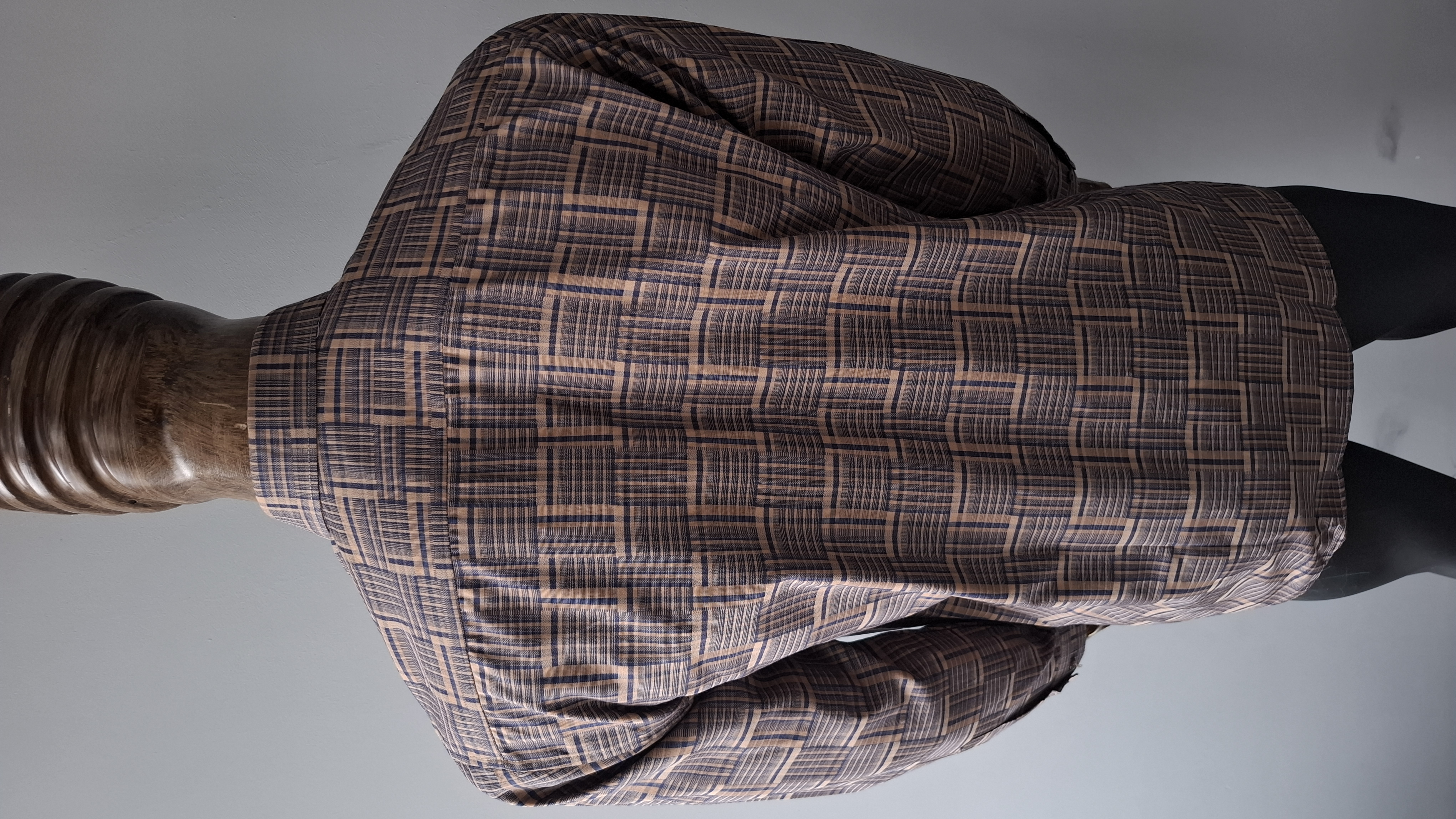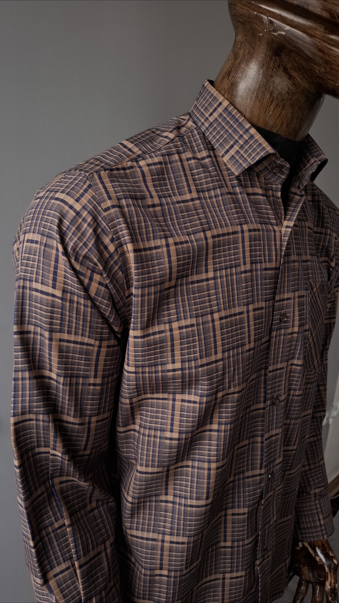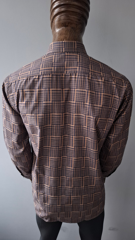 پیراهن قهوه ای تترون آستین بلند مردانه مدل چهار خونه کد PB0014