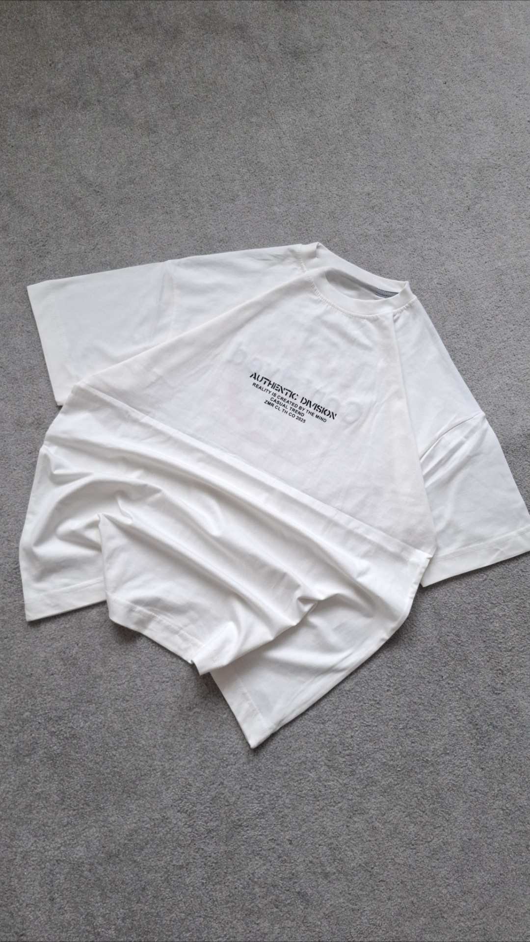 تیشرت سفید پارچه پنبه قواره باکسی مدل CONTRIVED کد TSH0015
