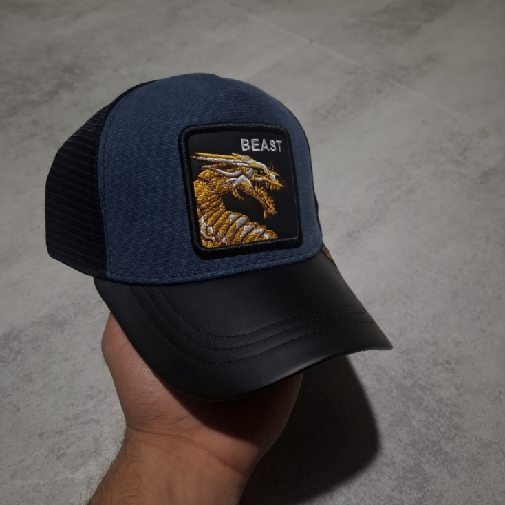 کلاه کتان مدل گورین * پشت توری نقاب چرم مصنوعی (فوم) * گلدوزی شده * کپ تاج دار * دارای تسمه پلاستیکی * بزرگسال قابلیت تغییر سایز