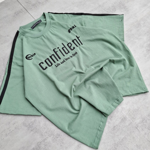 تیشرت سبز پارچه ماکان قواره باکسی مدل cofident کد TSH0006