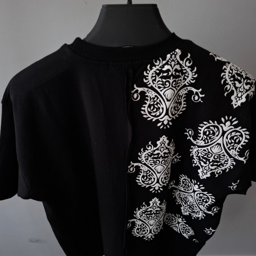 ناموجودتیشرت مشکی پارچه دورس 2 نخ قواره باکسی مدل بته جقه کد TSH0020
