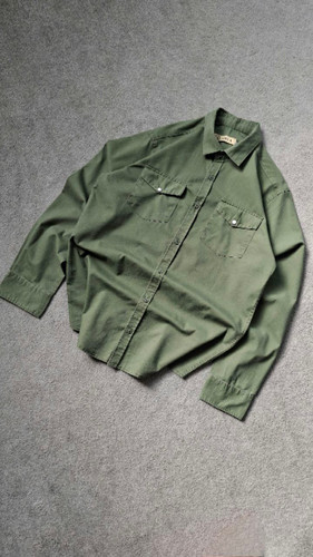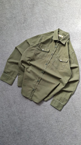 پیراهن کتان سبز زیتونی سنگشور شده مردانه دو جیب کد PA0007
