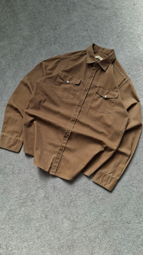پیراهن کتان نسکافه ای سنگشور شده مردانه دو جیب کد PA0007