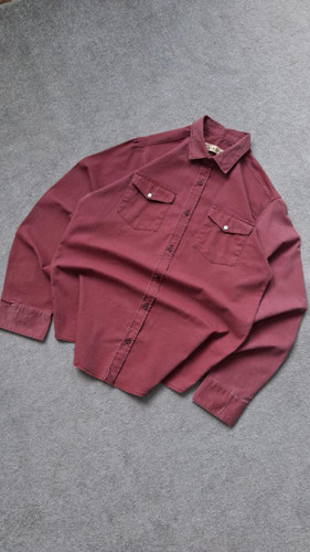 پیراهن کتان قرمز سنگشور شده مردانه دو جیب کد PA0007