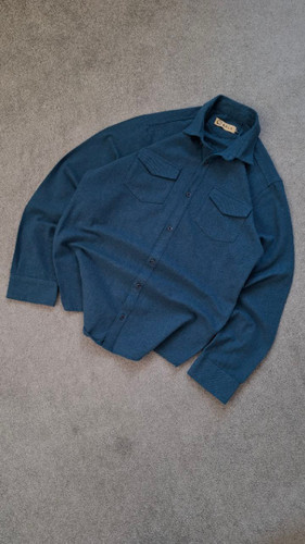 پیراهن کتان سرمه ای سنگشور شده مردانه دو جیب کد PA0008