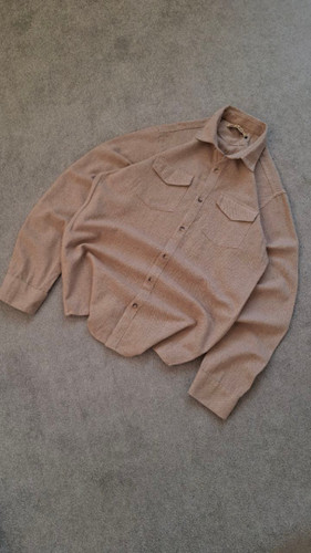 پیراهن کتان نسکافه ای سنگشور شده مردانه دو جیب کد PA0008