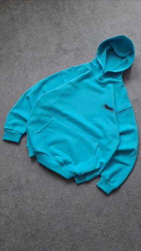 هودی آبی فیروزه ای STWD 3 نخ پنبه قواره باکسی کد HOD0002