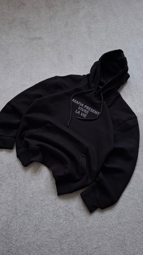 هودی مشکی مافیا 3 نخ پنبه قواره باکسی کد HOD0003