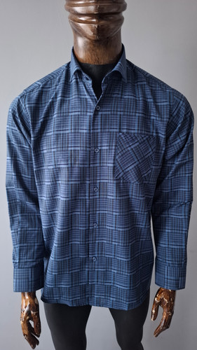 پیراهن آبی تیره تترون آستین بلند مردانه مدل چهار خونه کد PB0014