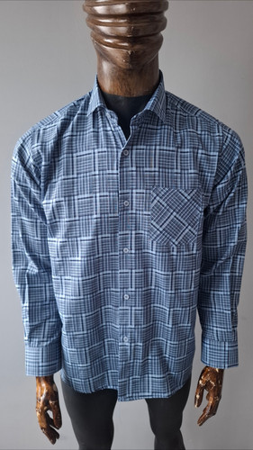 پیراهن آستین بلند مردانه مدل آبی چهار خونه کد PB0010