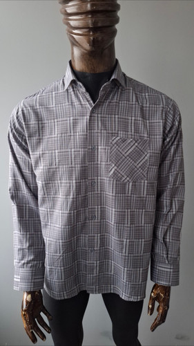 پیراهن طوسی روشن تترون آستین بلند مردانه مدل چهار خونه کد PB0014
