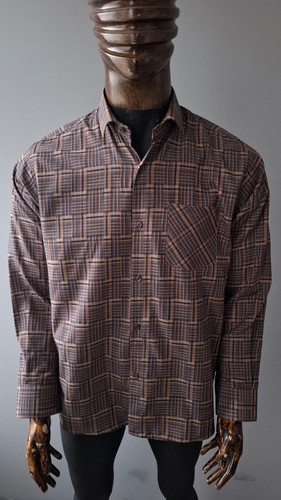 پیراهن قهوه ای تترون آستین بلند مردانه مدل چهار خونه کد PB0014