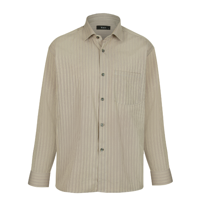 پیراهن تترون آستین بلند مردانه مدل نخودی راه راه کد PB0004