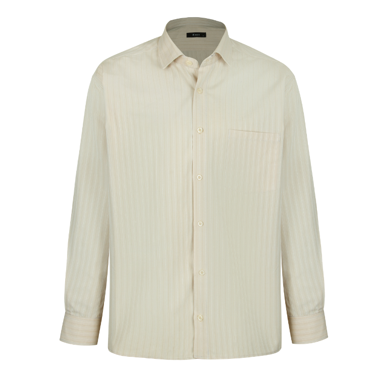 پیراهن تترون آستین بلند مردانه مدل کرم راه راه کد PB0004