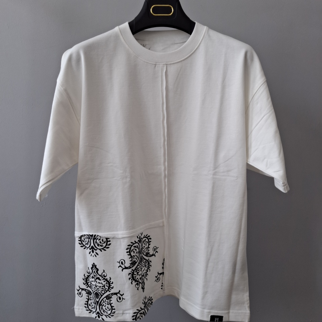 ناموجودتیشرت سفید پارچه پنبه نخ 28 قواره باکسی مدل ماندلا کد TSH0022