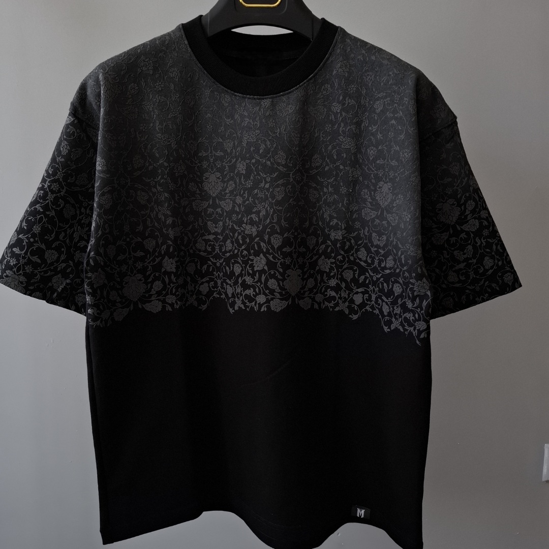 ناموجودتیشرت مشکی پارچه دورس 2 نخ قواره باکسی مدل بته جقه کد TSH0020