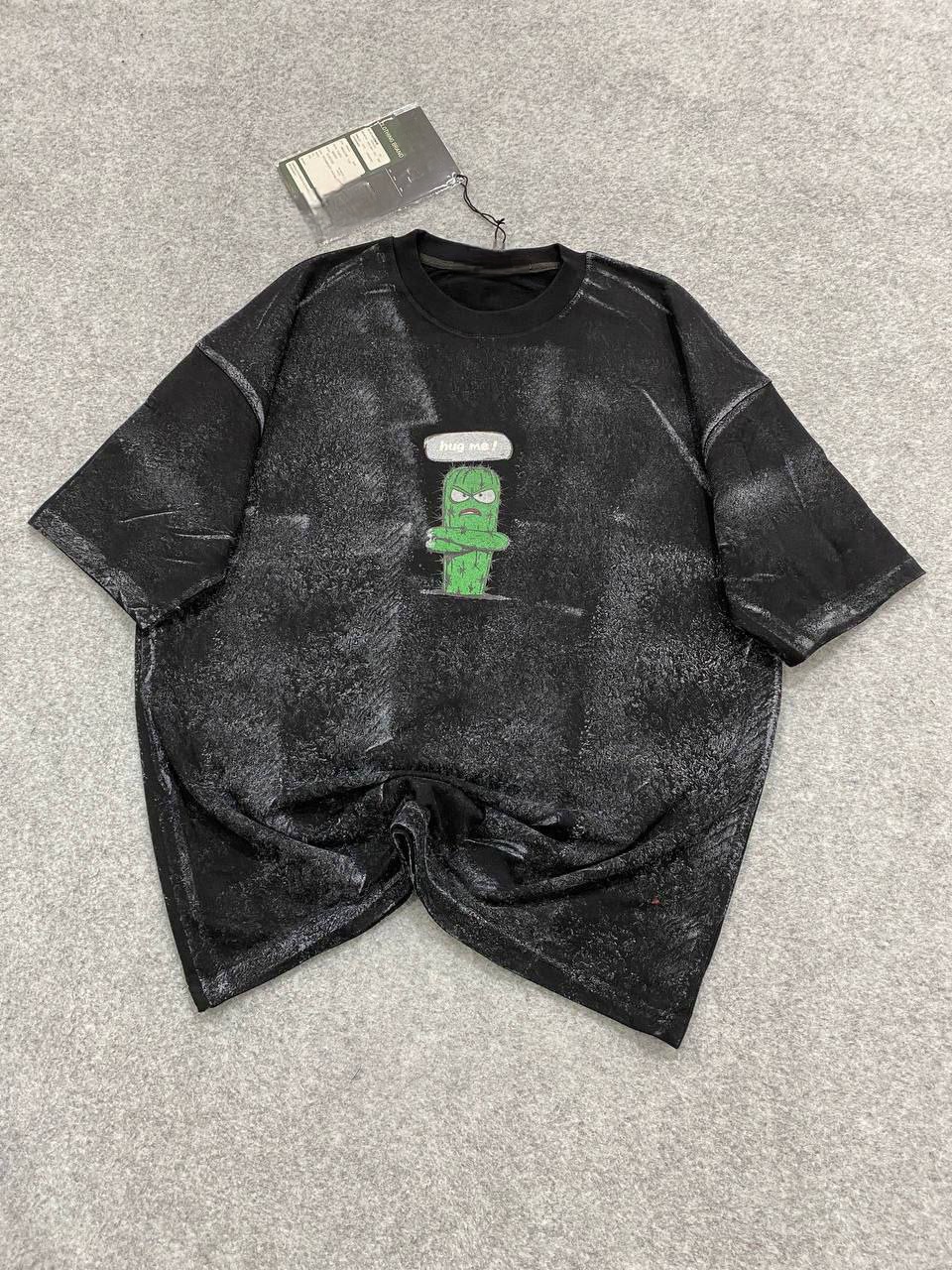 ناموجودتیشرت مشکی پارچه دورس 2 نخ قواره باکسی مدل کاکتوس کد TSH0031