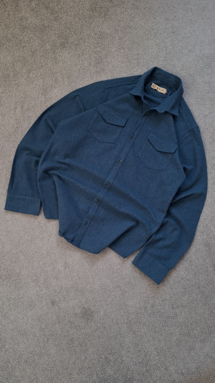 پیراهن کتان سرمه ای سنگشور شده مردانه دو جیب کد PA0008